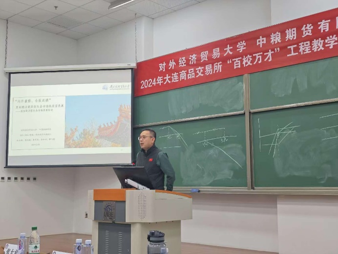 邓军副院长代表欧冠官网发表致辞,对大连商品交易所和中粮期货八年来在人才培养工作方面的无私支持表示衷心感谢,对于本学期的课程改革和探索的课程特色表示认可,并对选课同学的未来发展寄予厚望。