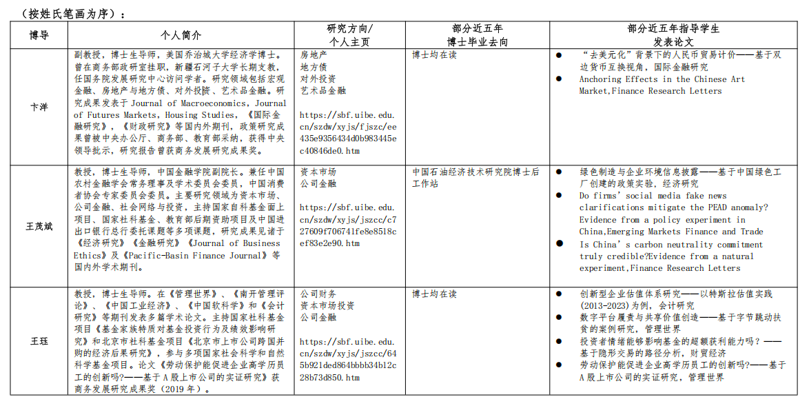师资力量:金融学方向博士生导师拥有22位教师,与监管部门、金融机构保持紧密合作关系。多人享受国务院政府特殊津贴,入选国家级重大人才计划、国家级青年人才计划、教育部新世纪优秀人才支持计划,获评北京市教学名师、北京市优秀青年人才、北京市课程思政教学名师等。