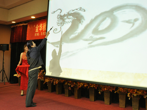 开幕式伊始,一段前九届金融文化节精彩瞬间的视频将现场同学的视线聚焦于本届金融文化节。伴随着启动仪式视频,主持人娓娓回顾金融文化节走过的历程,并邀请陈建香书记为启动仪式视频中横亘静止在屏幕上的龙画下点睛一笔。陈建香书记手持毛笔,点下龙睛,顷刻画面再次鲜活,由此宣布金融学院第十届金融文化节正式启动。随后,陈书记在致辞中对金融学院在人才培养、科研、师资引进等方面的实力和影响力予以充分的肯定,她特别感谢了金融学院校友对学校做出的卓越贡献。同时,她认为金融学院举办的第二课堂讲座有效地弥补了课堂的不足,体现了专业化的办学特色,让学生们的专业素质在高品位学者、教授的引领下得到充分地提升,最后,她希望金融学院的精品活动越办越好,并对本届金融文化节寄予厚望。